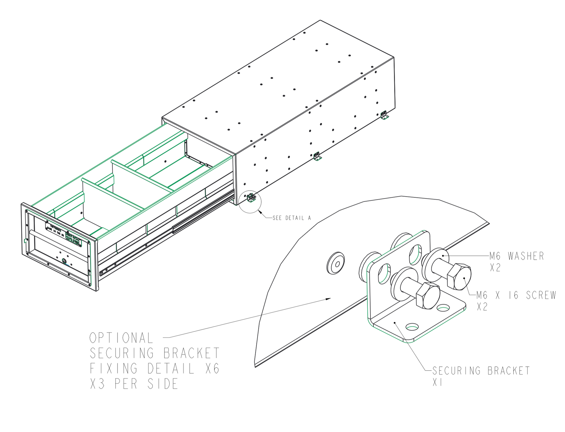 Includes two adjustable dividers as standard, with additional dividers available for full customisation and organisation.