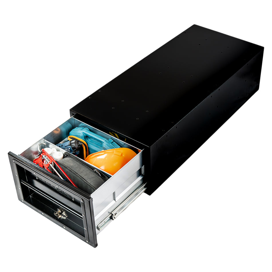 Our Volt tool drawer is perfect for small to large vans where space is a premium. The long and slim size design of our slider means it can hold power tools, hand tools and accessories with ease.